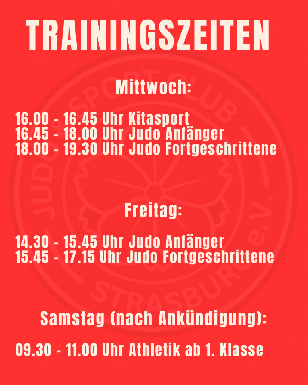 Ab sofort trainieren wir zu anderen Zeiten! Mittwoch: 16.00 – 16.45 Uhr Kitasport16.45 – 18.00 Uhr Judo Anfänger18.00 – 19.30 Uhr Judo Fortgeschrittene Freitag: 14.30 – 15.45 Uhr Judo Anfänger15.45…